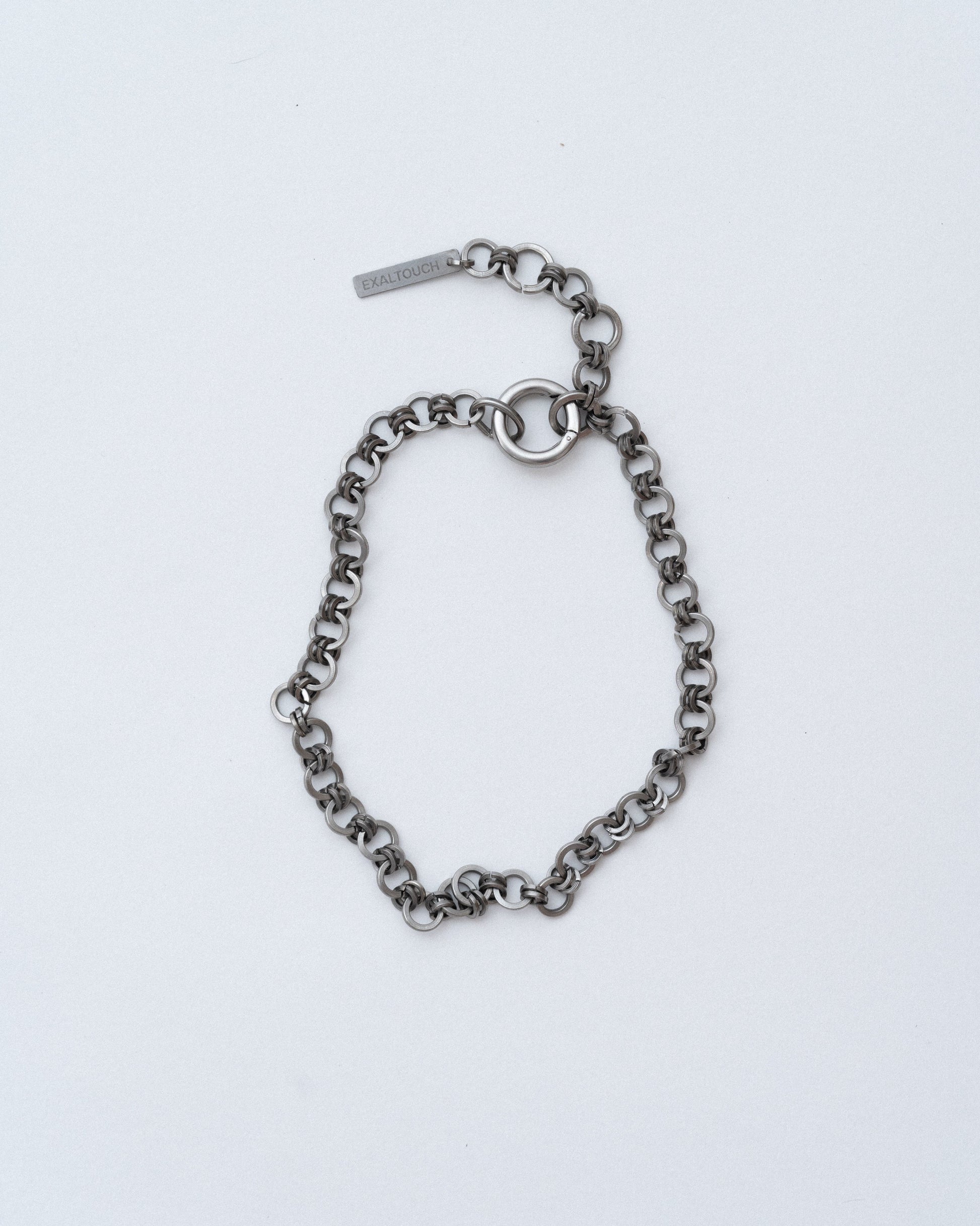 Це витончена варіація нашого класичного ланцюга, створена з індустріальних кілець меншого діаметра з нержавіючої сталі. Зібраний вручну, він зберігає мінімалістичну силу нашого впізнаваного Base, але має легший і делікатніший вигляд.