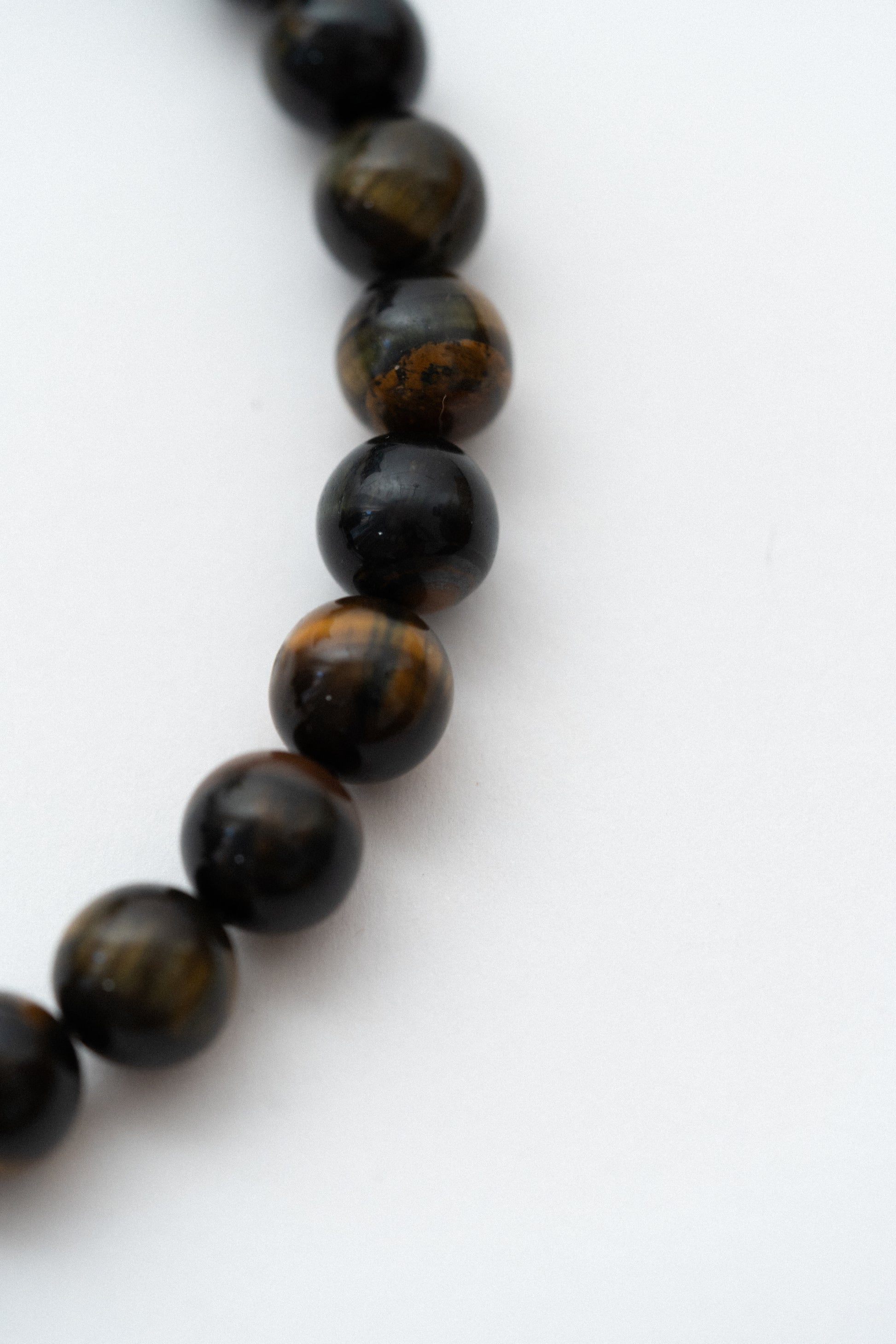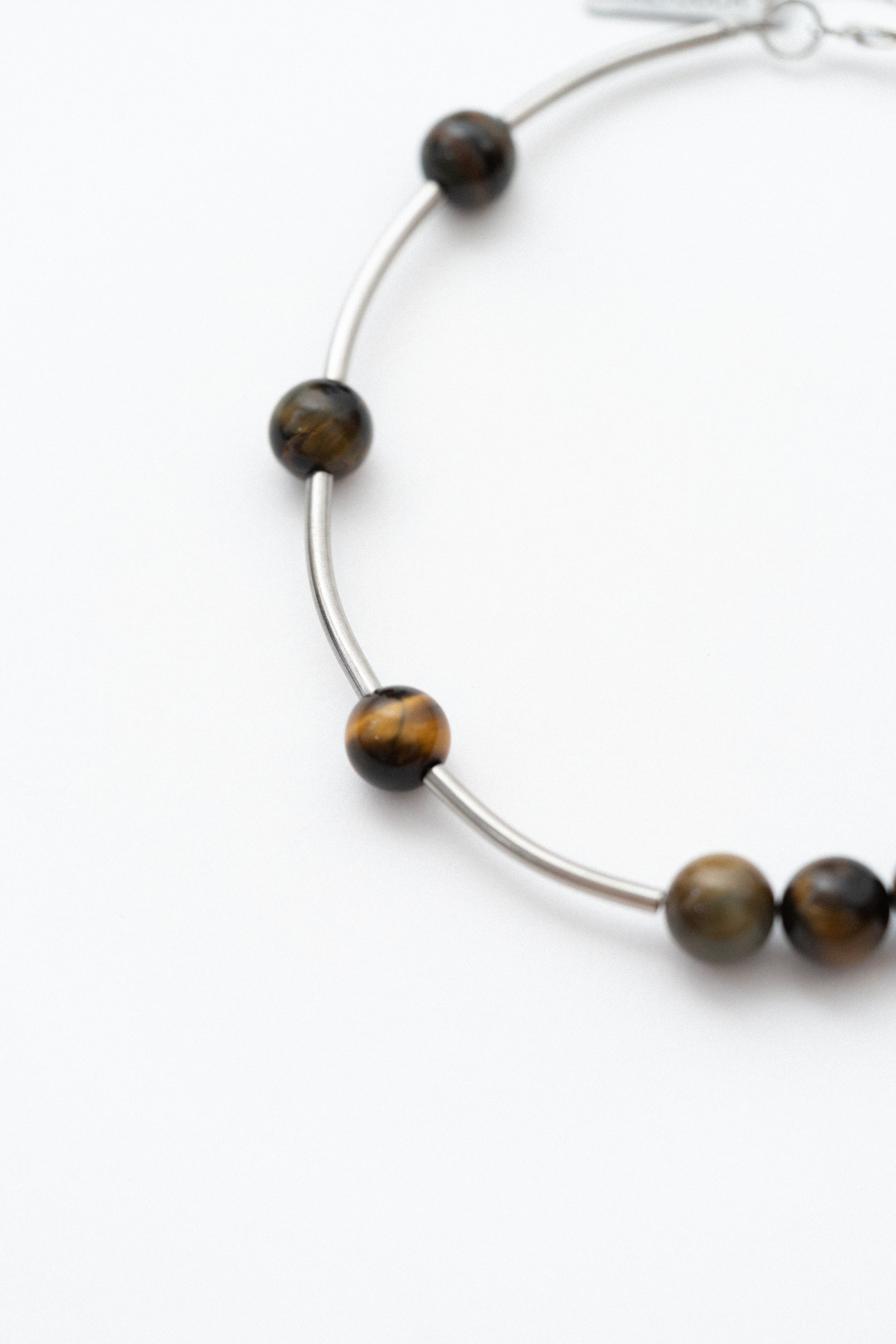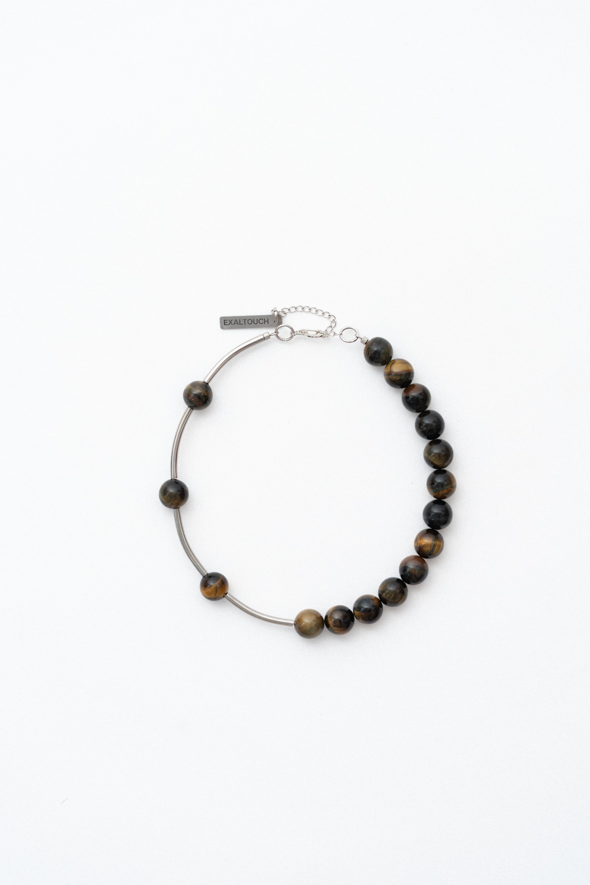 Прикраса зібрана вручну з натуральних каменів — африканської бірюзи, далматинової яшми, соколиного ока або родоніту — та фурнітури з нержавіючої сталі. У кожному камені власний малюнок річок, плям та вихорів. Носіть його, коли хочеться втекти від невизначеності; історія Іо нагадує: справжні зміни починаються там, де ми зупиняємося й дивимося собі у вічі.